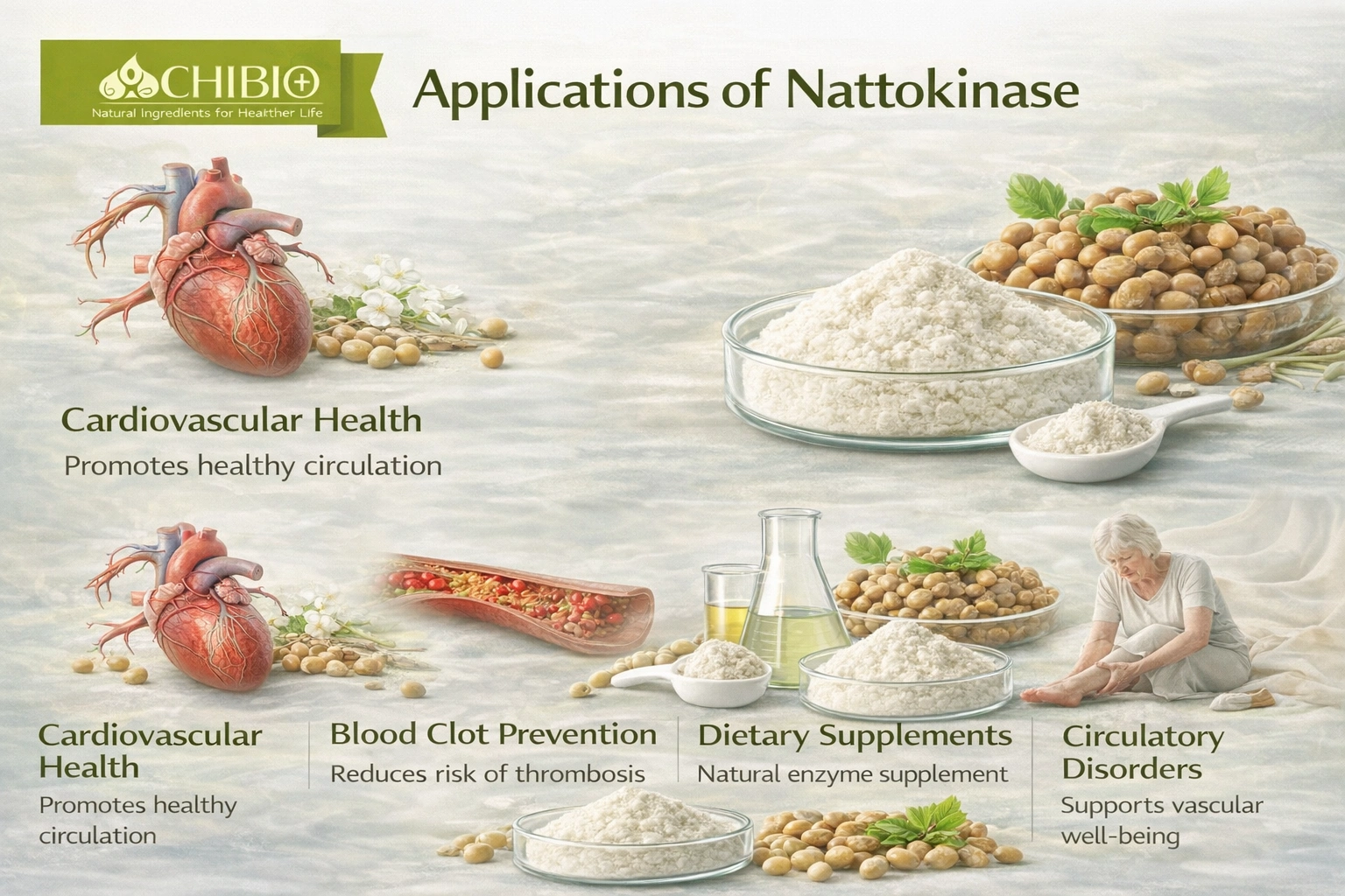 Nattokinase works by helping to break down fibrin, a protein involved in blood clot formation. Because of this mechanism, it is widely used in cardiovascular health supplements, functional foods, and nutraceutical formulations.