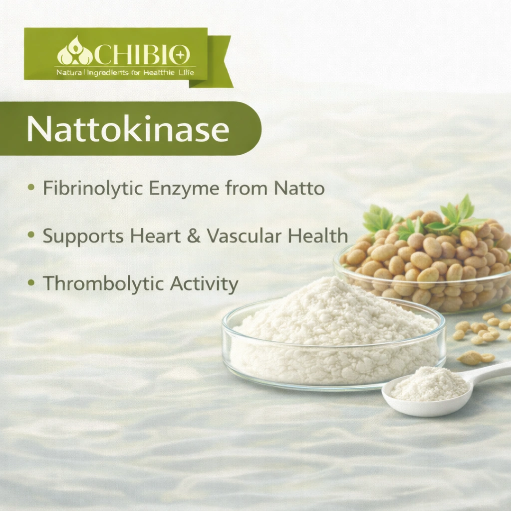 Chibio’s Nattokinase (≥20,000 FU/g) is a high-activity fibrinolytic enzyme produced through controlled fermentation of Bacillus subtilis natto. With strong enzymatic activity, strict quality control, and international certification standards, it is an ideal ingredient for cardiovascular health supplements and advanced nutraceutical formulations.