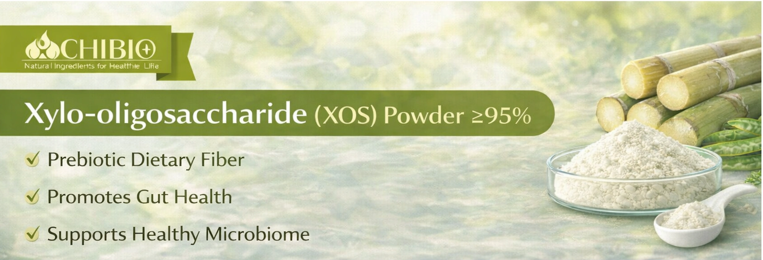 Chibio Biotech supplies XOS Powder ≥95%, manufactured through advanced enzymatic conversion and purification technology, ensuring high purity, excellent functionality, and reliable quality for food, beverage, and nutraceutical formulations.