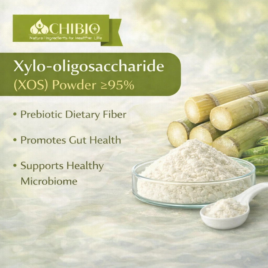 Chibio’s Xylo-oligosaccharide (XOS) ≥95% Powder is a highly effective prebiotic ingredient that supports gut microbiota balance, digestive health, and immune function. With excellent stability, high purity, and internationally certified manufacturing standards, it is an ideal ingredient for functional foods, beverages, and nutraceutical formulations.
